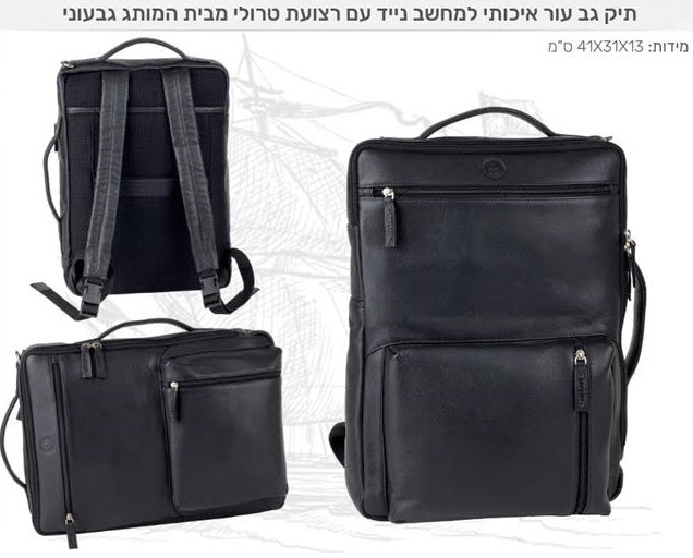 • תיק גב וצד 2 ב-1 עשוי מעור אמיתי, חזק ואיכותי, שיעמוד בכל הסחיבות והטלטלות.