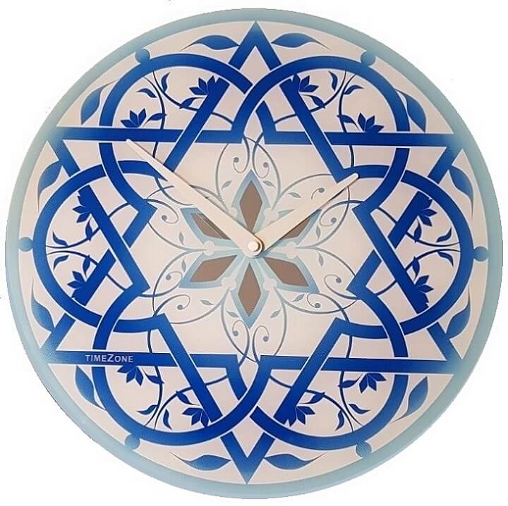 שעון קיר זכוכית ומראה בעיצוב מגן דוד כחול 35 ס"מ