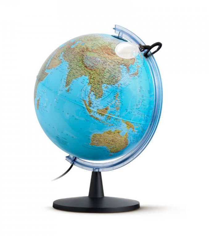 גלובוס-מנורה שולחני 40 ס''מ בעברית עם זכוכית מגדלת
