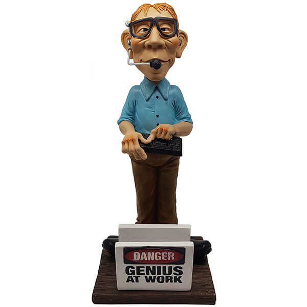 • עיצוב המעמד כולל גם דמות בובתית של "גאון הייטק"