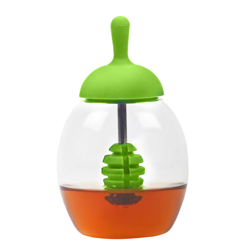 • צנצנת זכוכית עם מוט מתכת משולב רודה סיליקון לדבש, מכסה סיליקון