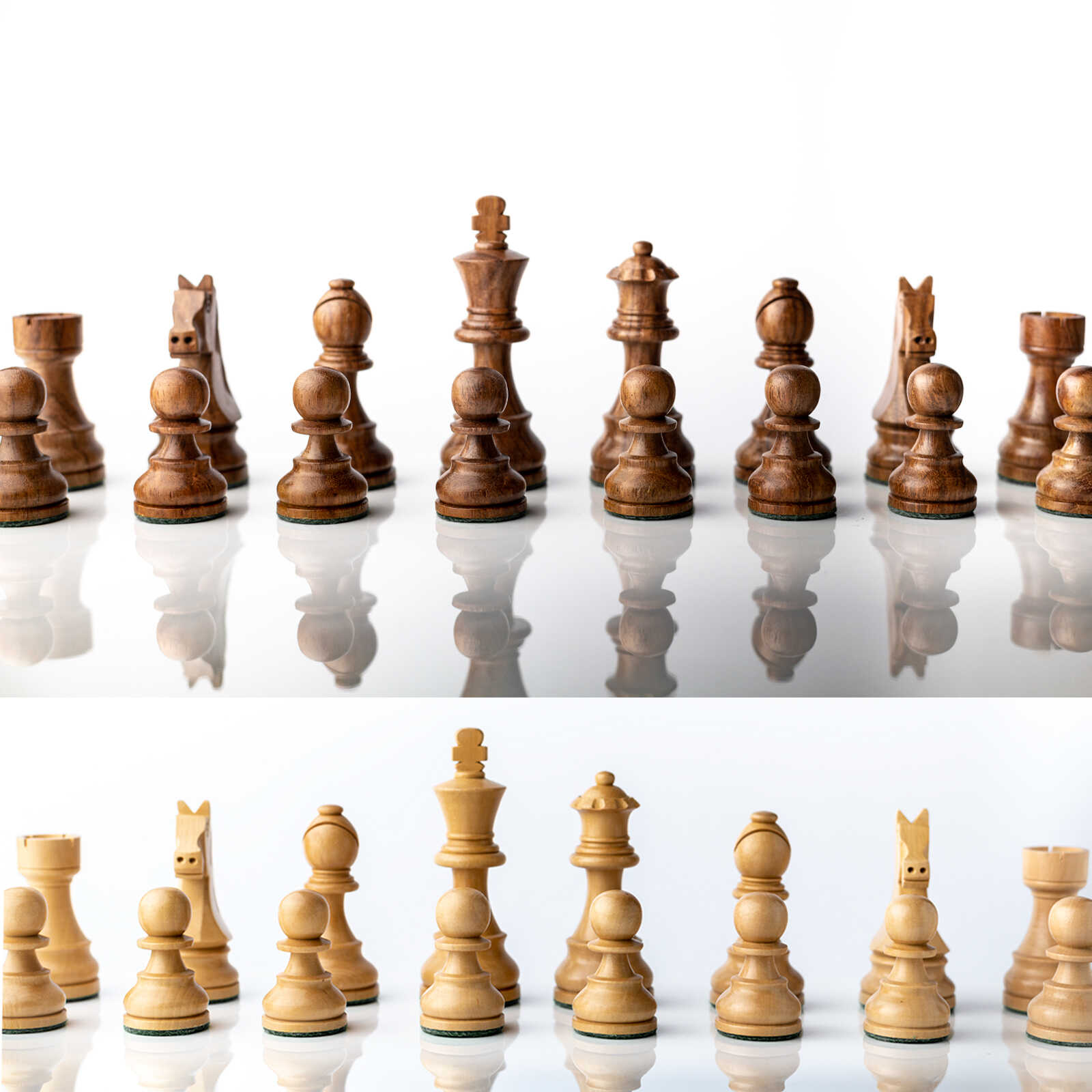 32 כלים לשחמט: 16 עץ סיסם בהיר ו-16 עץ סיסם כהה