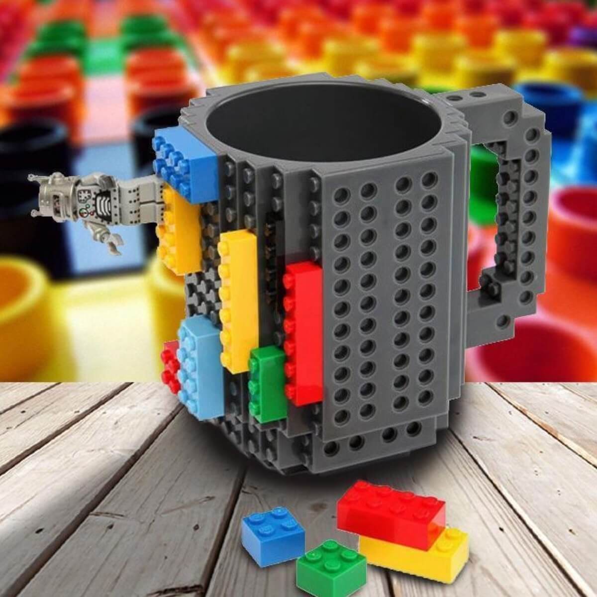 - שבצו את הספל באבני משחק (בסגנון לגו) צבעוניות