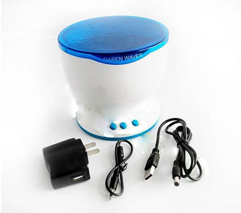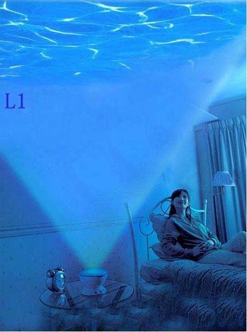 מקרן שולחני מרהיב שמקרין תמונת אוקיינוס עם תנועה על התקרה