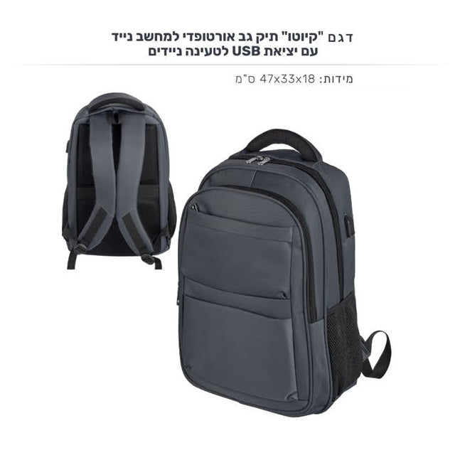 תיק גב אורטופדי למחשב נייד עם יציאת USB