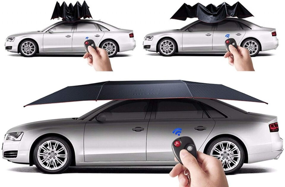 סוכך נייד חשמלי לרכב להצללה והגנה הן לחניה בבית/בחוץ + ציליית אוטומטית לחוף