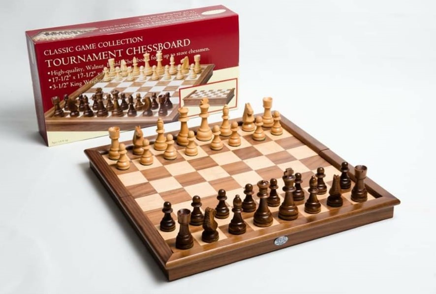 לוח שחמט מקצועי ומהודר מעץ אגוז עם כלים גדולים