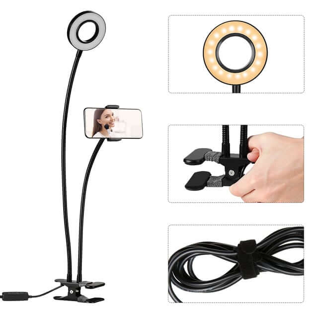 ערכת צילום עצמי - זרוע גמישה לסמרטפון ותאורה מקצועית