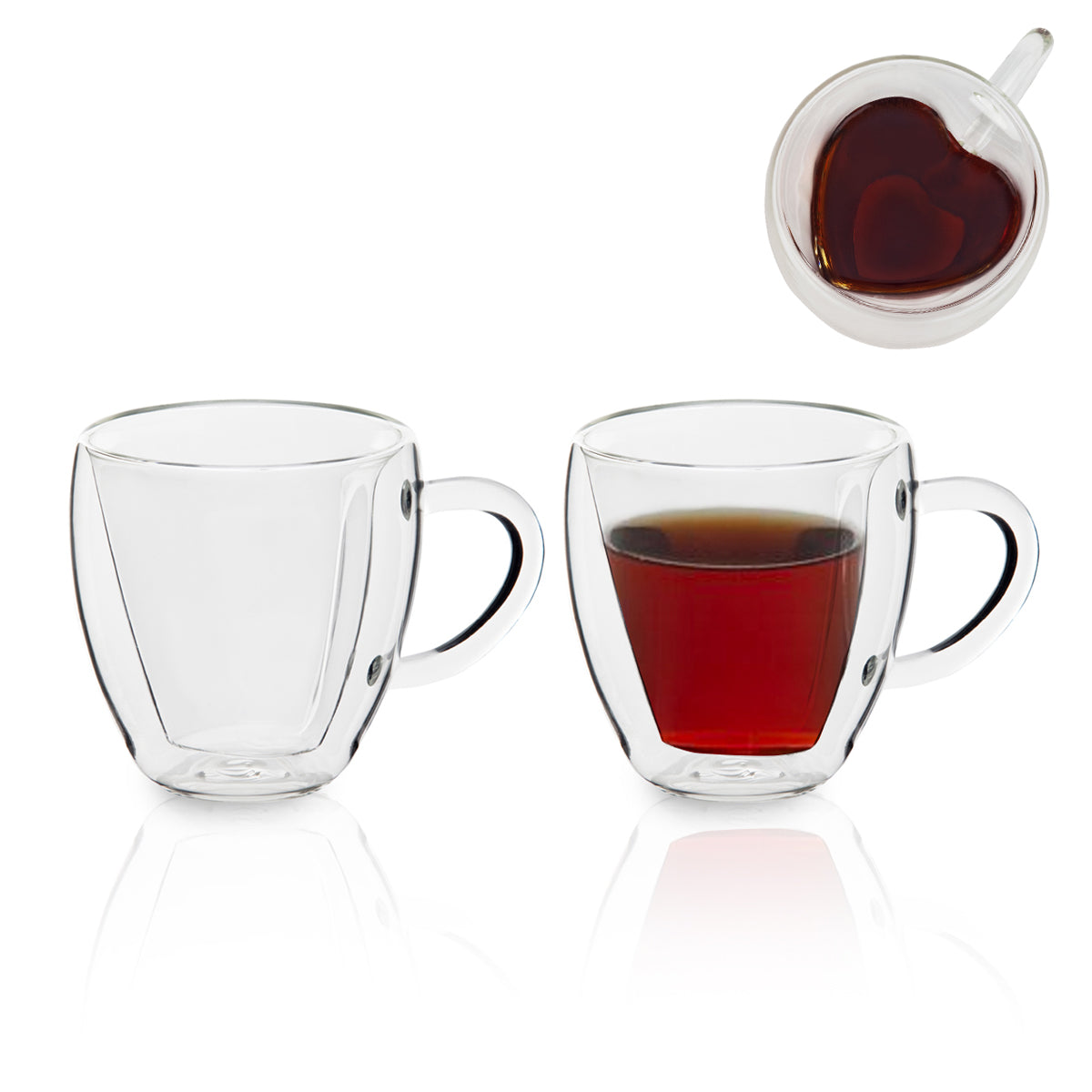 סט זוג כוסות דופן כפולה בצורת לב דגם וולנטינו