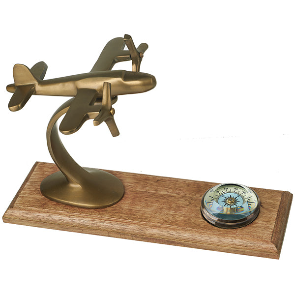 מעמד שולחני וינטג' מטוס נחושת עם מצפן