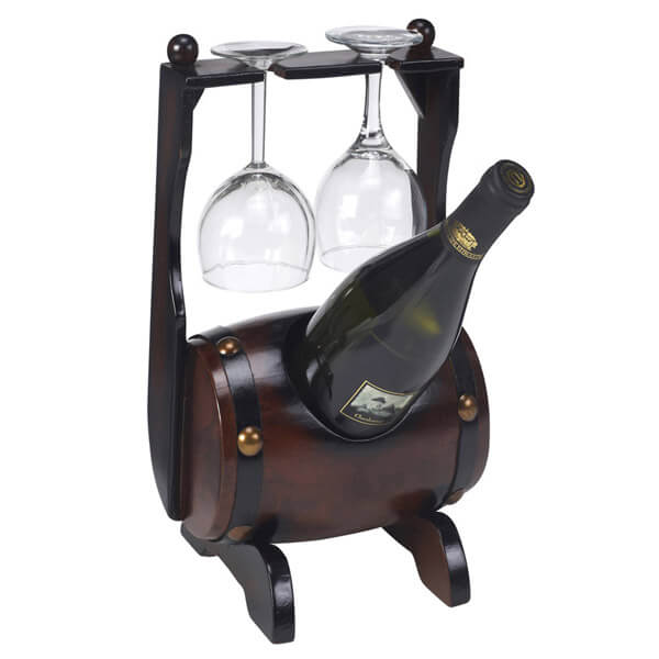 מעמד עץ מהודר לבקבוק יין וכוסות