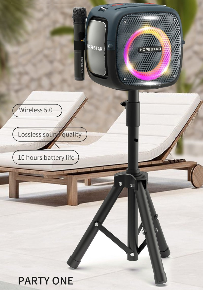 בידורית קריוקי אלחוטית נטענת עם חצובה ומיקרופונים BT