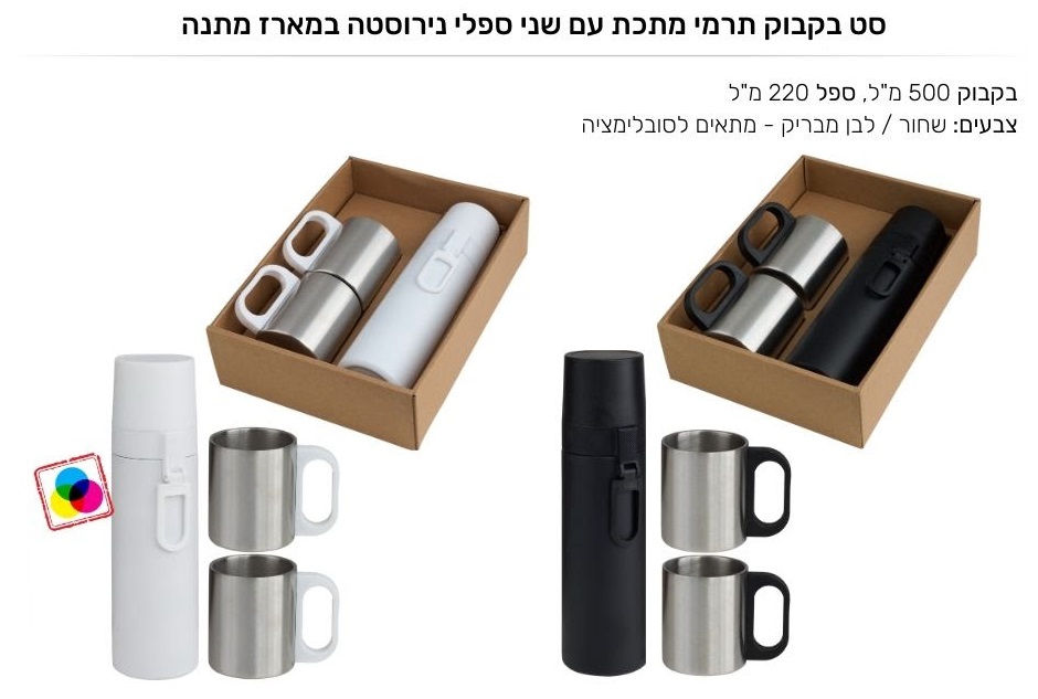 סט בקבוק תרמי מתכת עם שני ספלי נירוסטה במארז מתנה | במלאי באתר ובחנות!