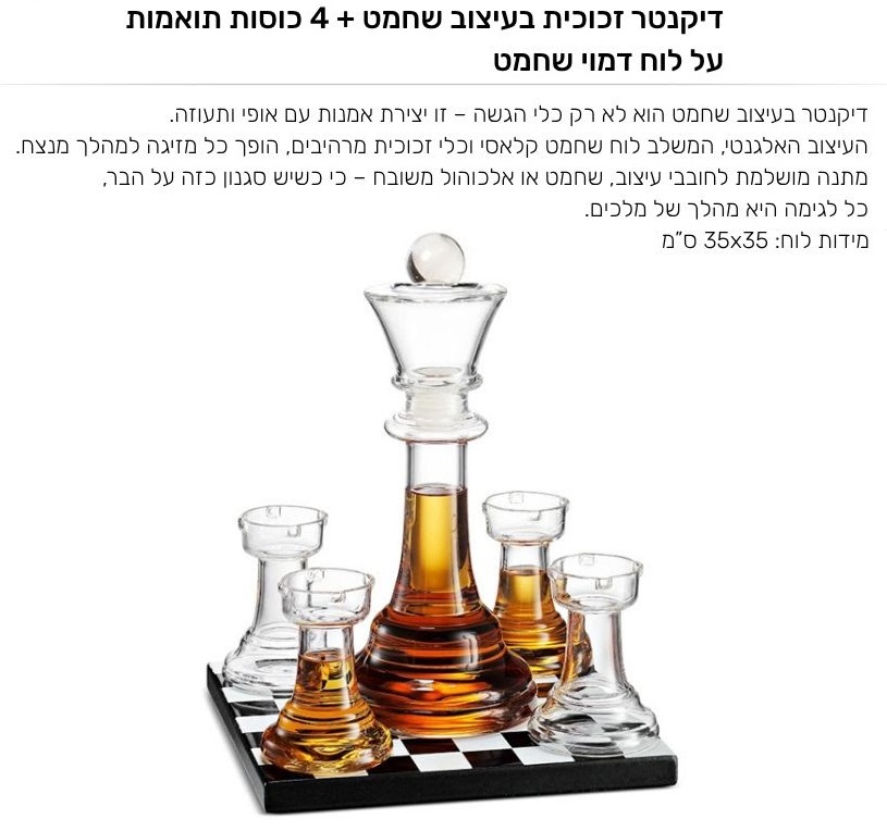 • מתנה מושלמת לחובבי עיצוב, שחמט או אלכוהול משובח, ויסקי ועוד.