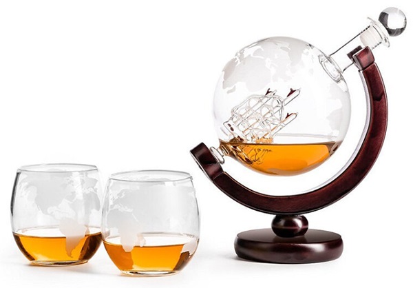 דיקנטר זכוכית בעיצוב גלובוס | 2 כוסות ויסקי | גאדג'טים לויסקי יין | אביזרים לויסקי | מתנות לבית | מתנות לחג | Gadgets | Accessories | Gifts | whiskey decanter